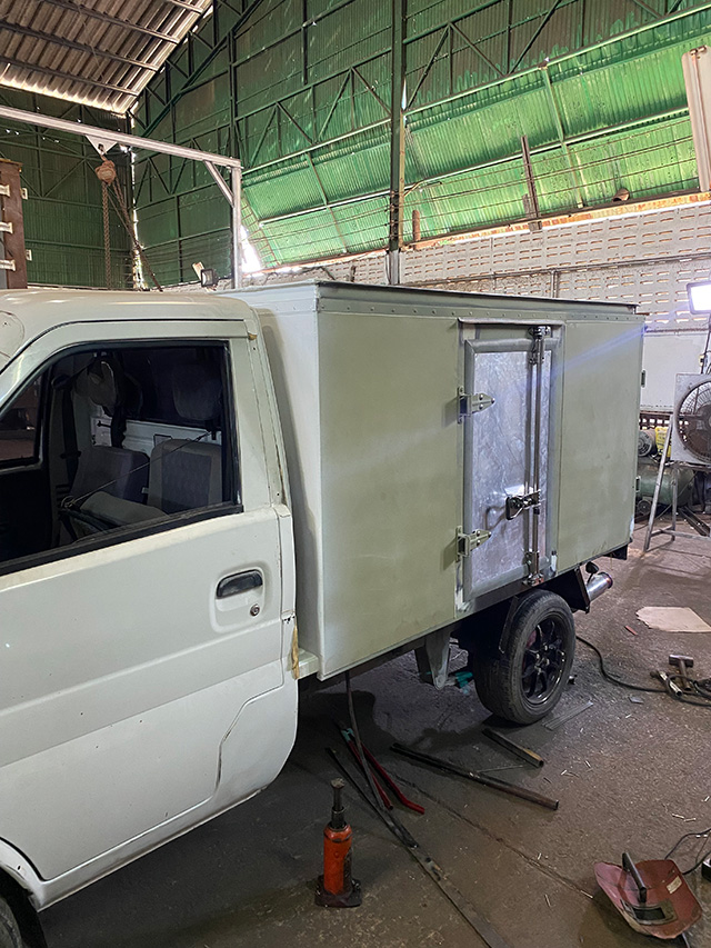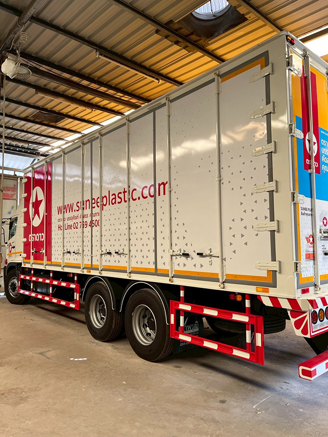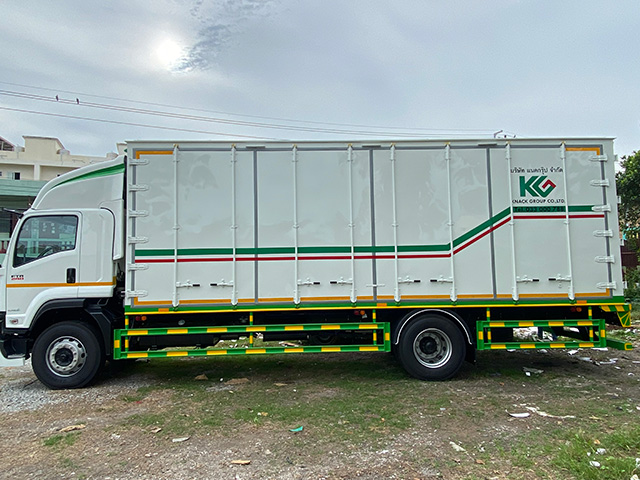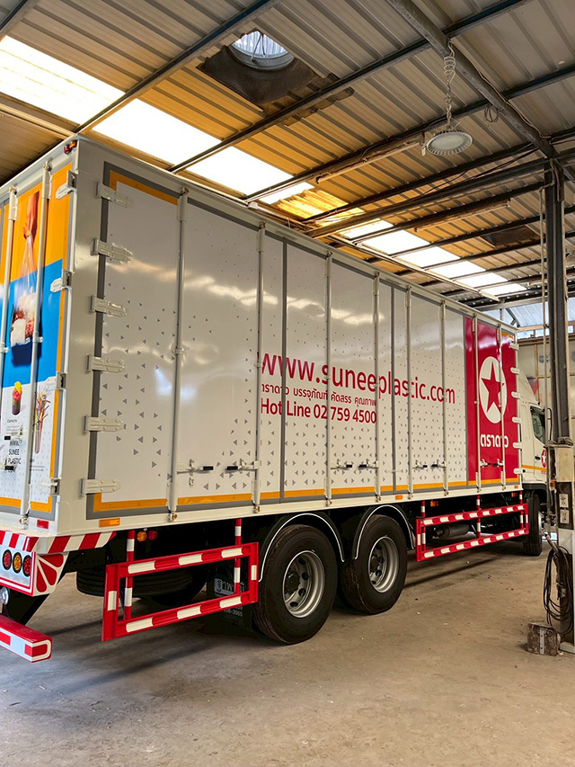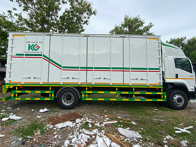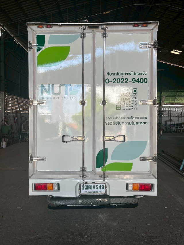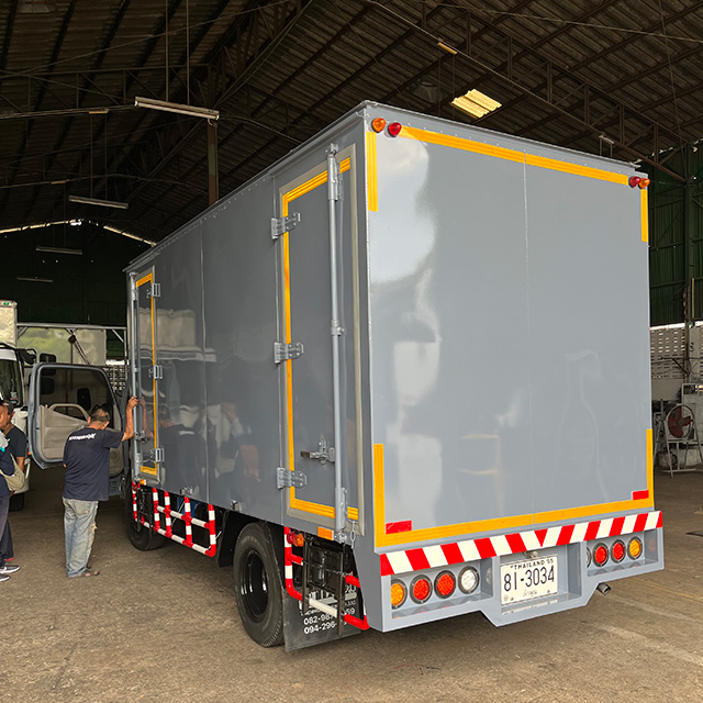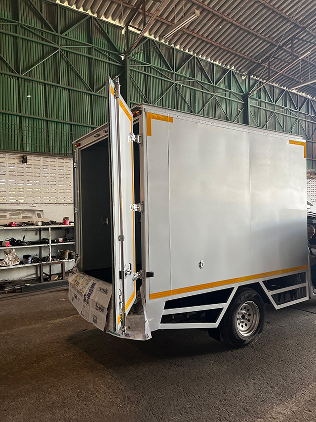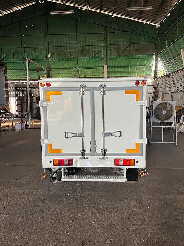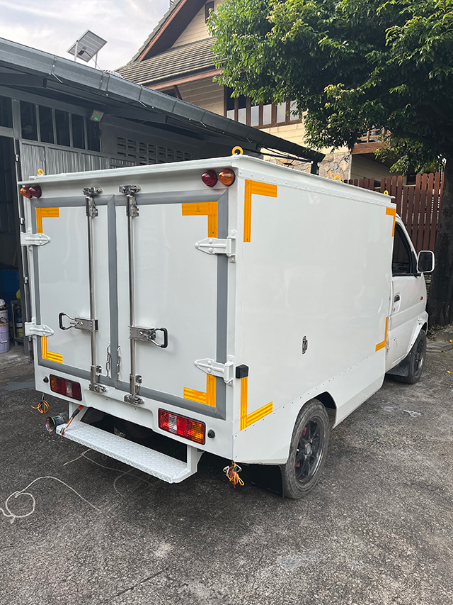ตู้แห้ง 2 ประตูบนแชสซีรถ 4 ล้อ พร้อมทำโลโก้