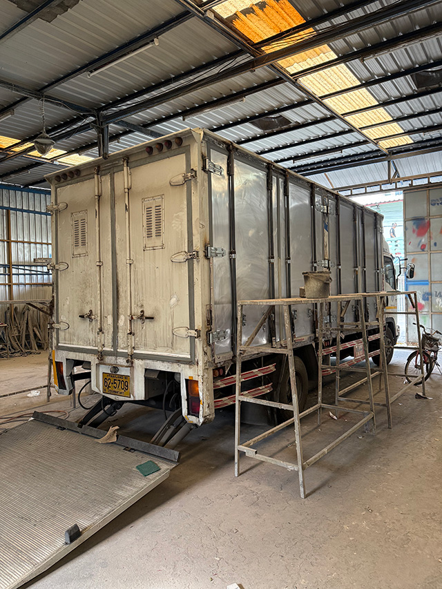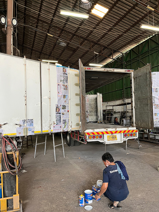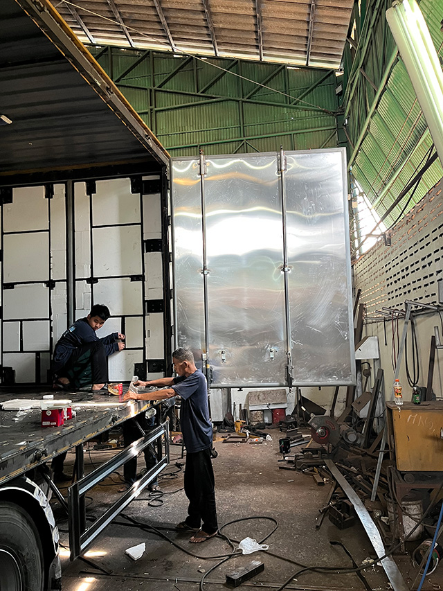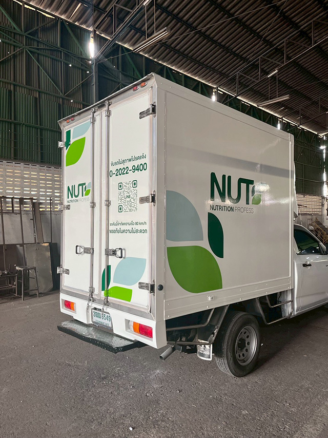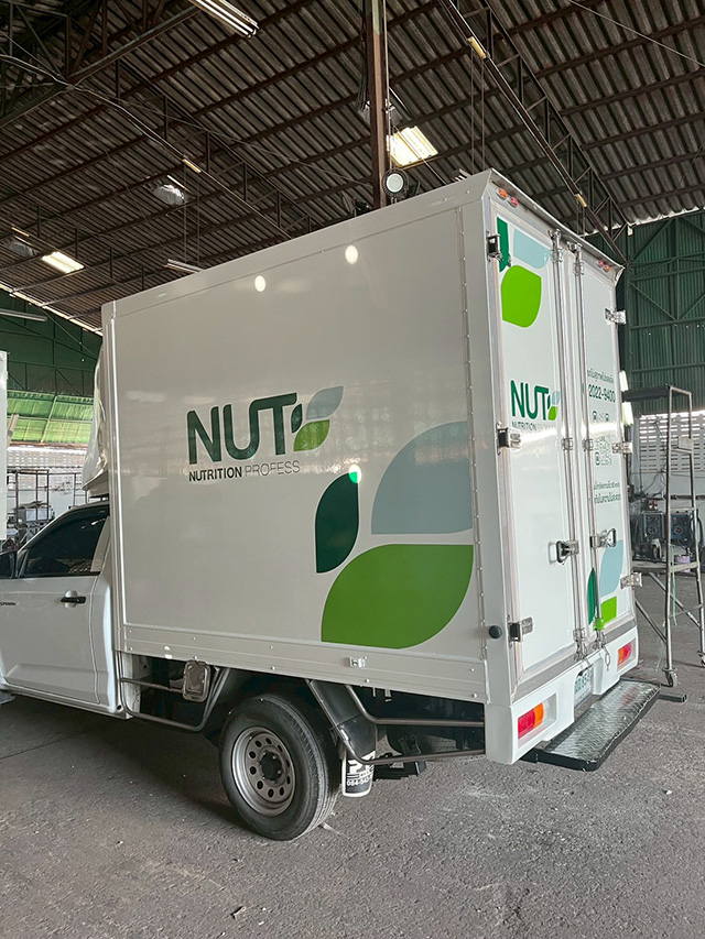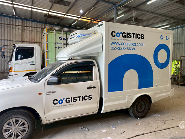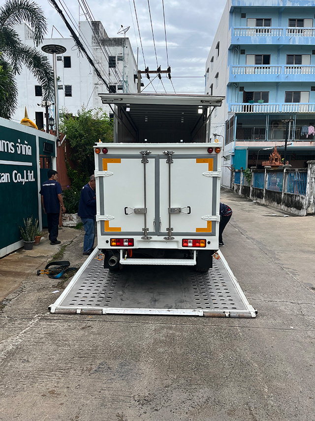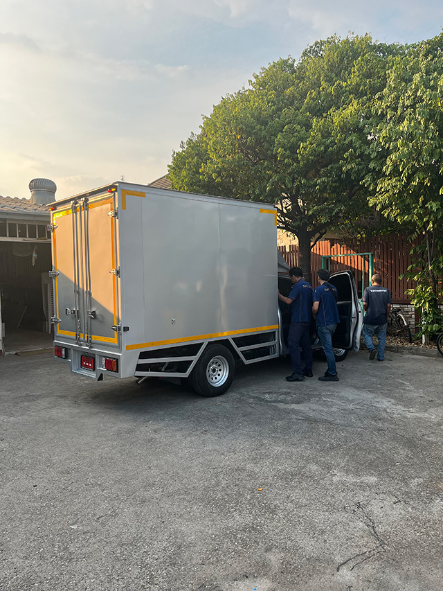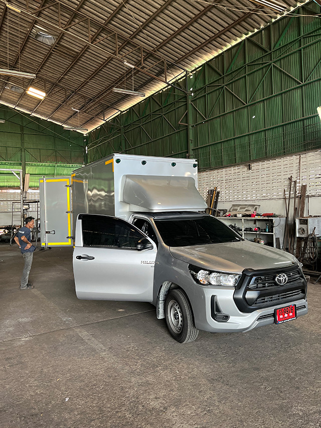ตู้แห้ง 2 ประตูบนแชสซีรถ 4 ล้อ พร้อมทำโลโก้