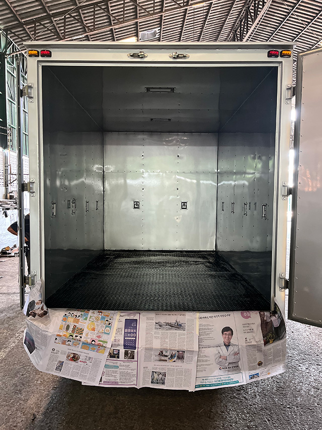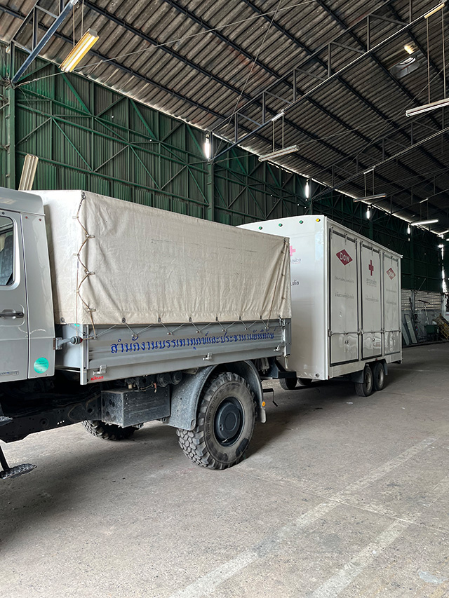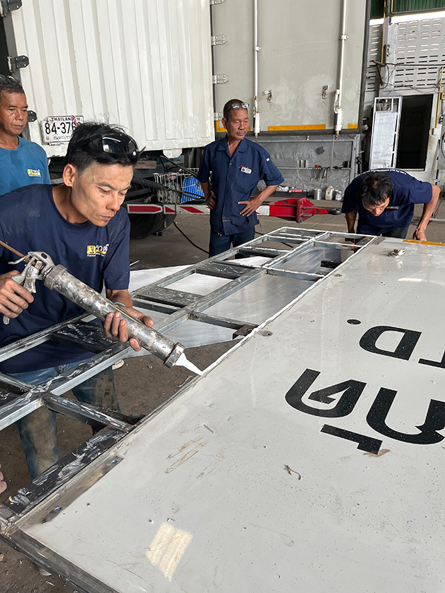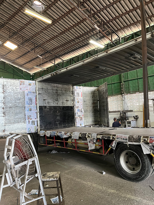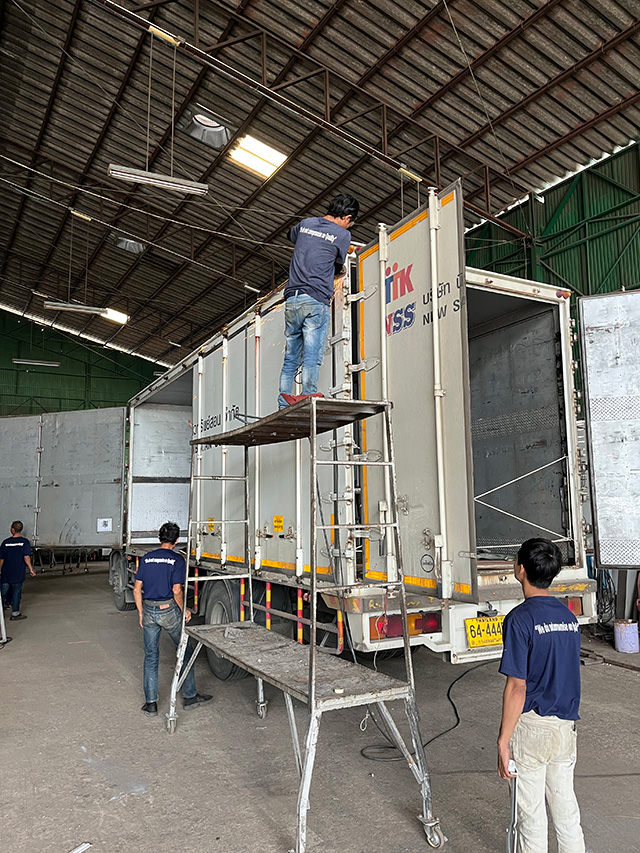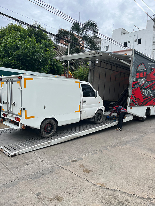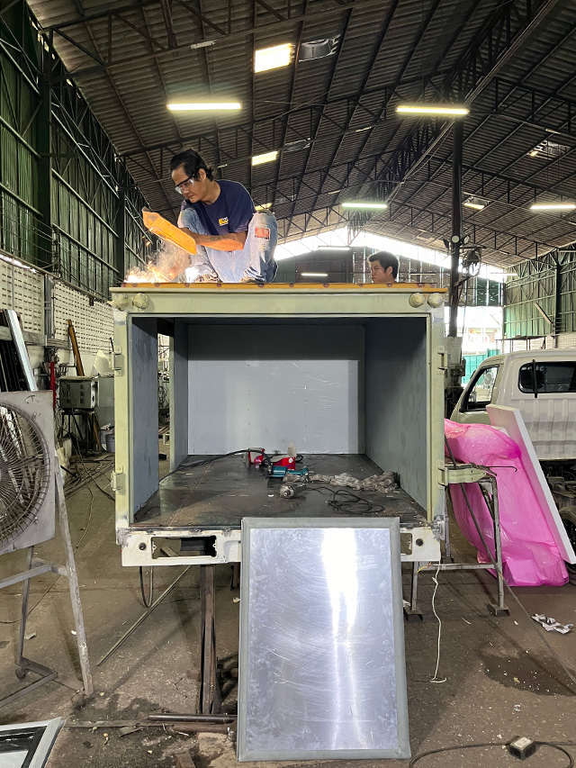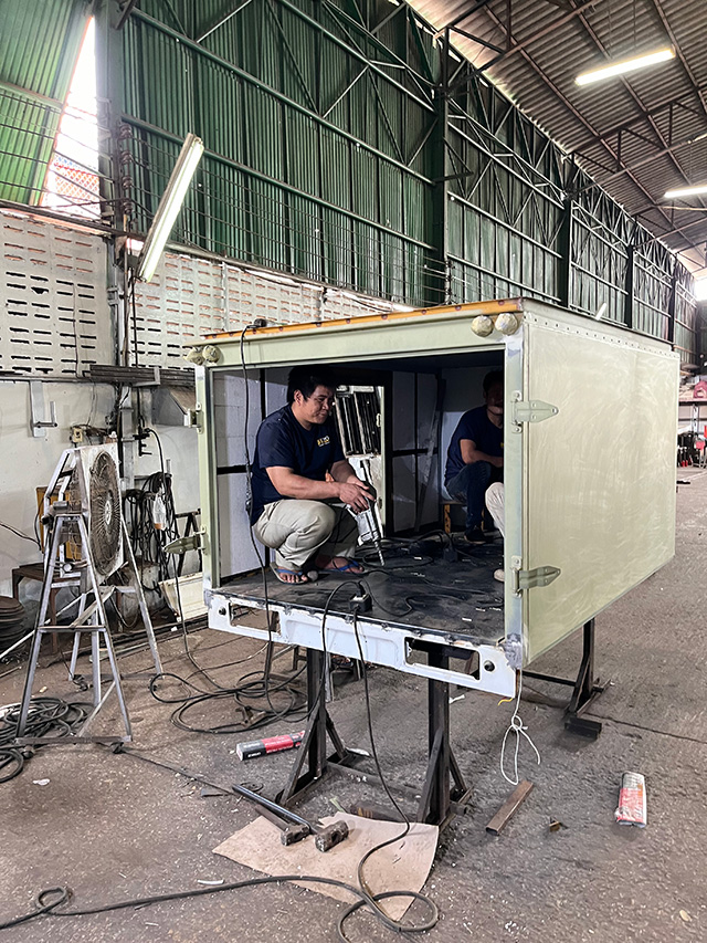 ตู้แห้ง 2 ประตูบนแชสซีรถ 4 ล้อ พร้อมทำโลโก้